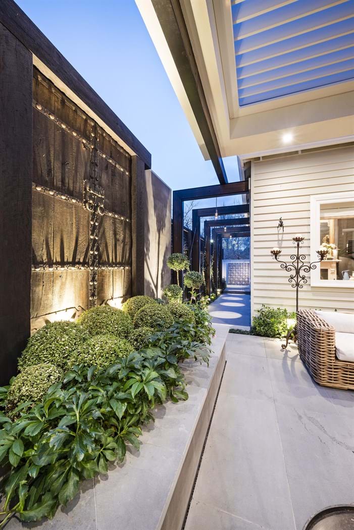 The client had purchased antique doors and it was a must that they be used somehow. The client had her own decorating style and was keen to incorporate her style through her collected treasures. Furthermore, the sideway was an entrance that most of her friends used over and above the front door so this space needed to be made into something special as well, again taking the emphasis away from the neighbour's roof.