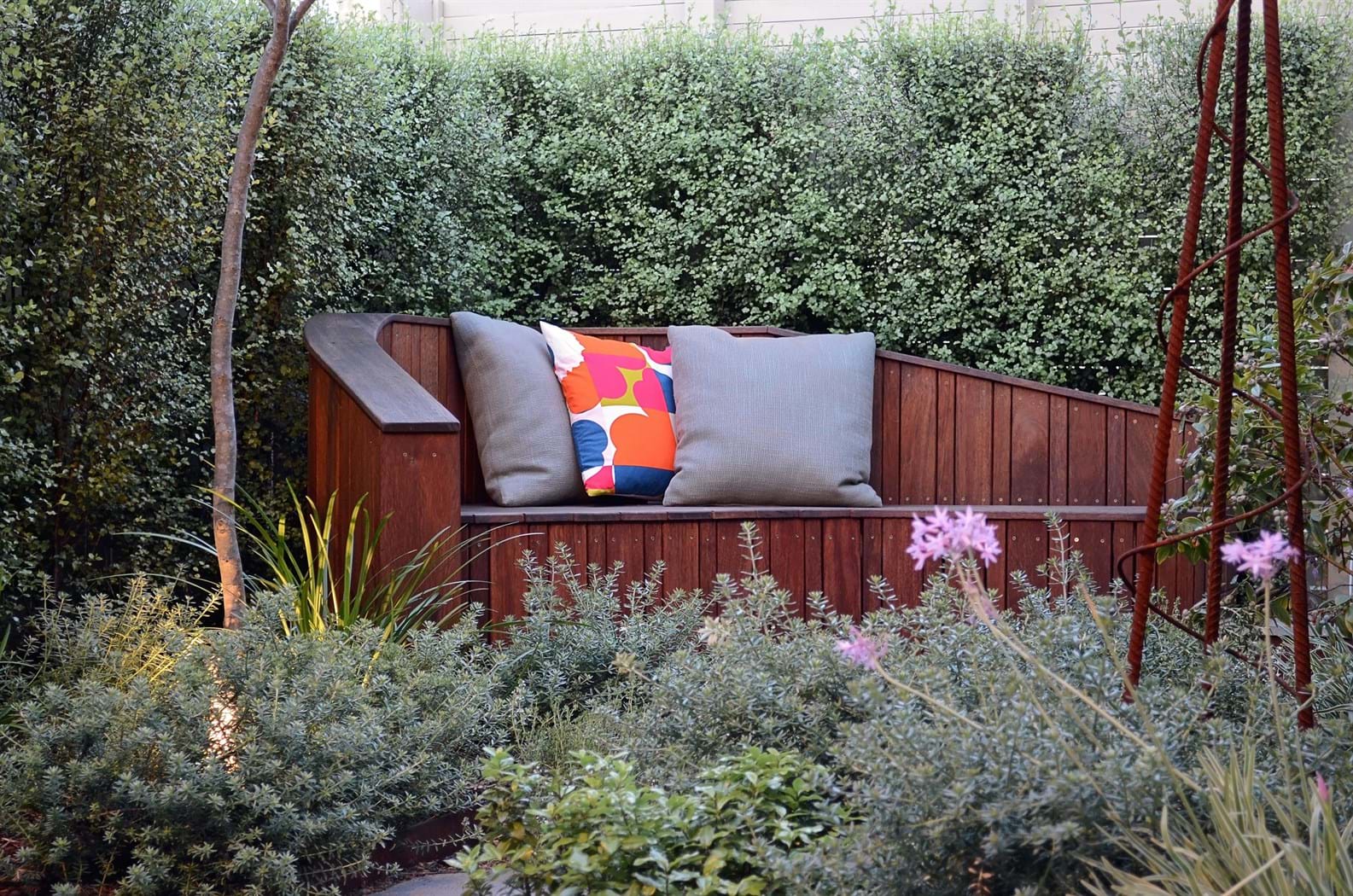 The result is a modern take on a native bush style garden. It is relaxed in its style and planting, but essentially strong in character and form. The timber seat is the hero of the garden, owning the space and inviting you in.
