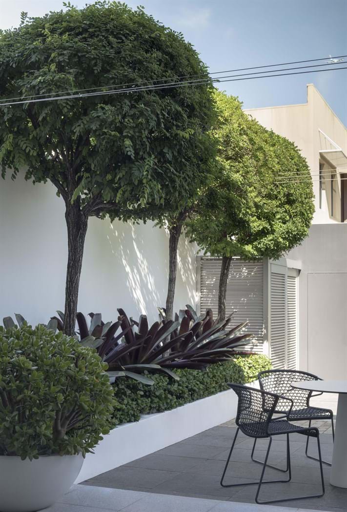 The end result is a low maintenance, smart entertainer that compliments the modern design of the home whilst providing some more classic finishes and plant selections.