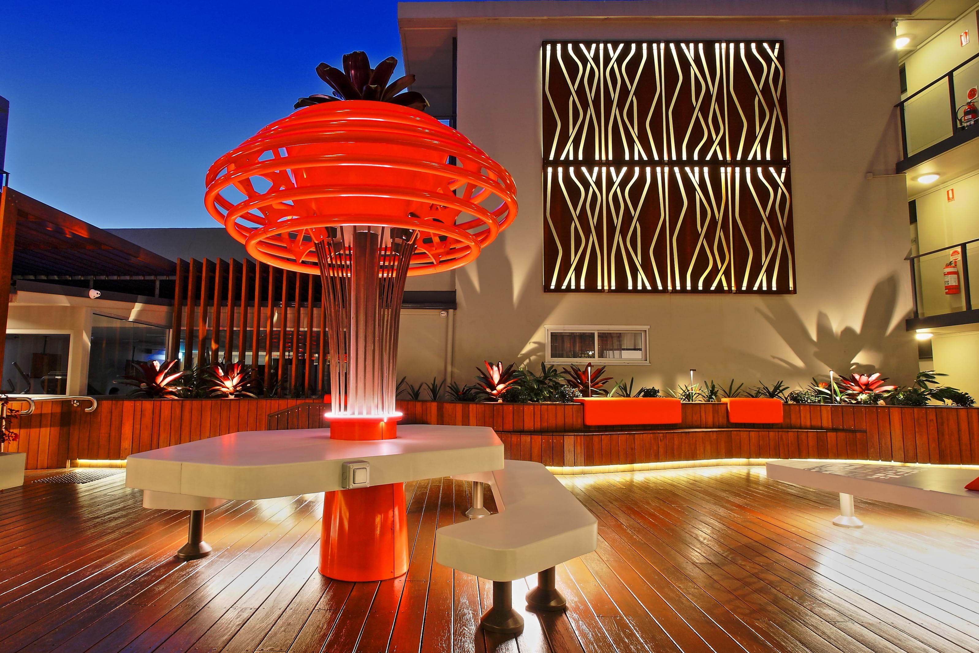 The courtyard within this inner west hotel originally contained an oversized pool which was rarely used. As part of the hotel’s extensive renovation 3 years ago, the client decided to in fill the pool as an attempt to create a more useful and engaging guest space. Sadly, their original attempt resulted in a cold, unusable and lacklustre environment and certainly didn’t compliment the rest of the hotel’s edgy inner west vibe which was suitable for both business and discerning tourist visitors.