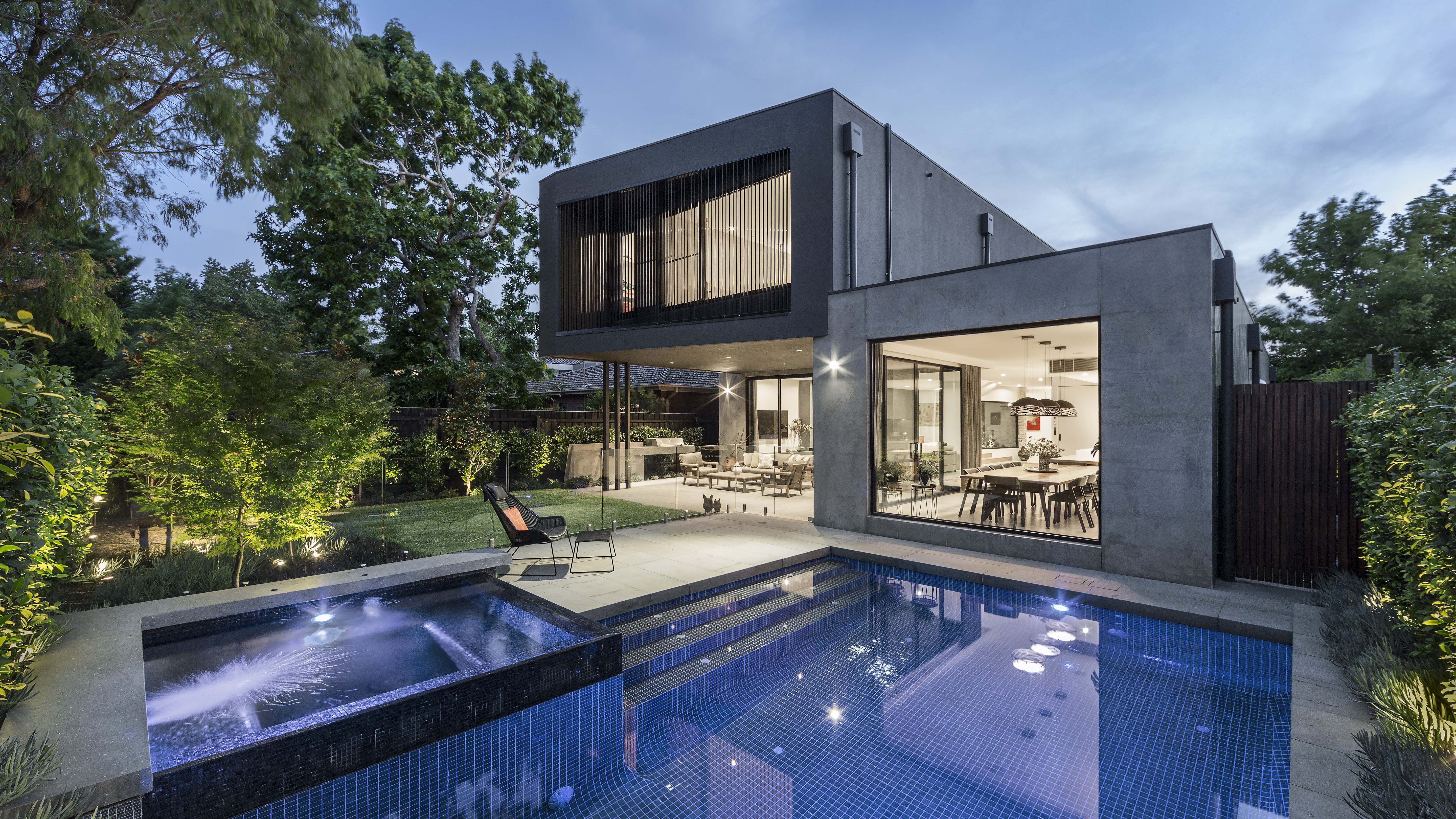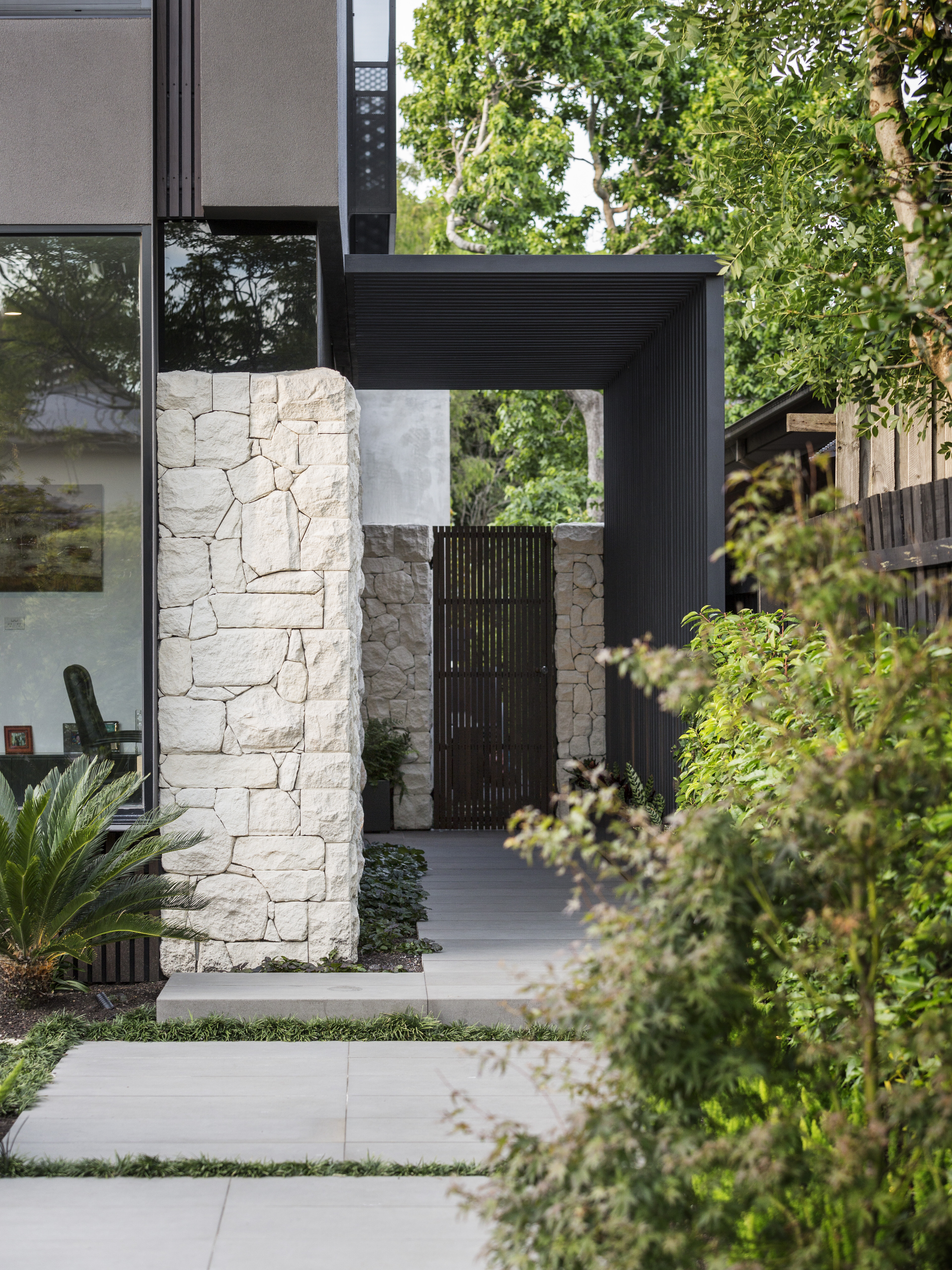 The brief was extensive; the clients wanted a pool and spa, a generous alfresco entertaining space, open lawn areas and an inviting entry, with clean lines, yet an organic feel to the space, and the two internal courtyard light wells had to be striking in every way.