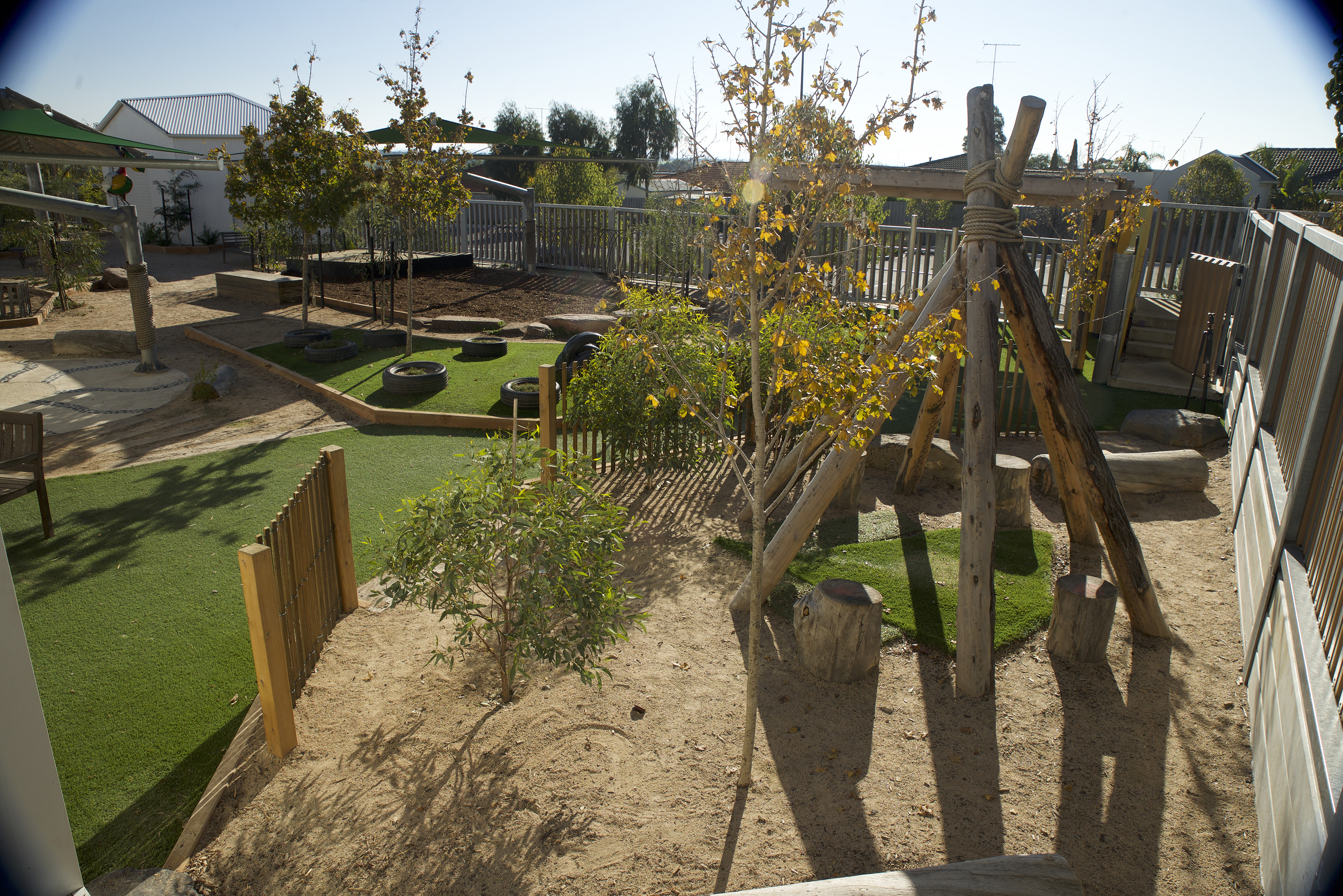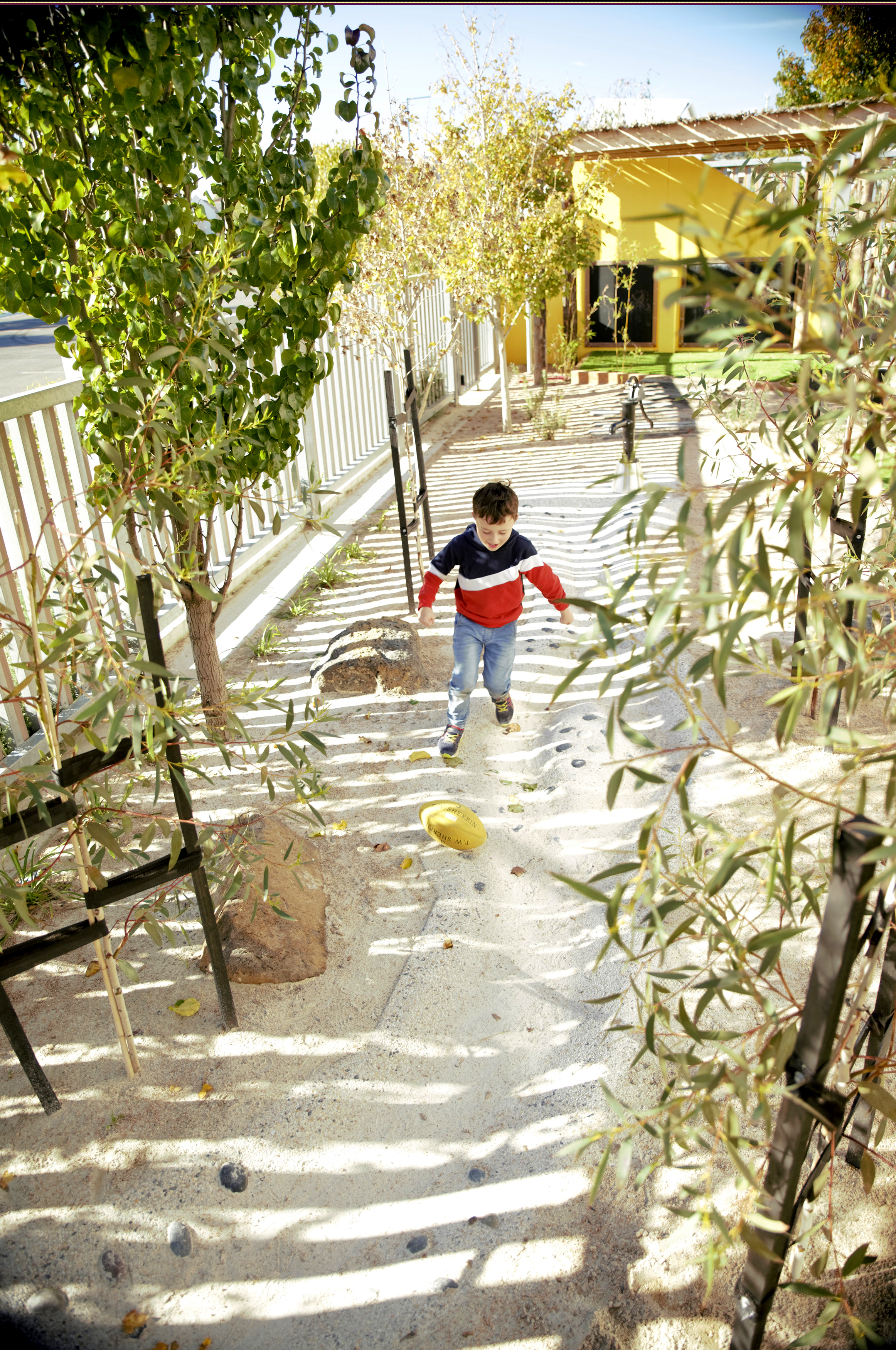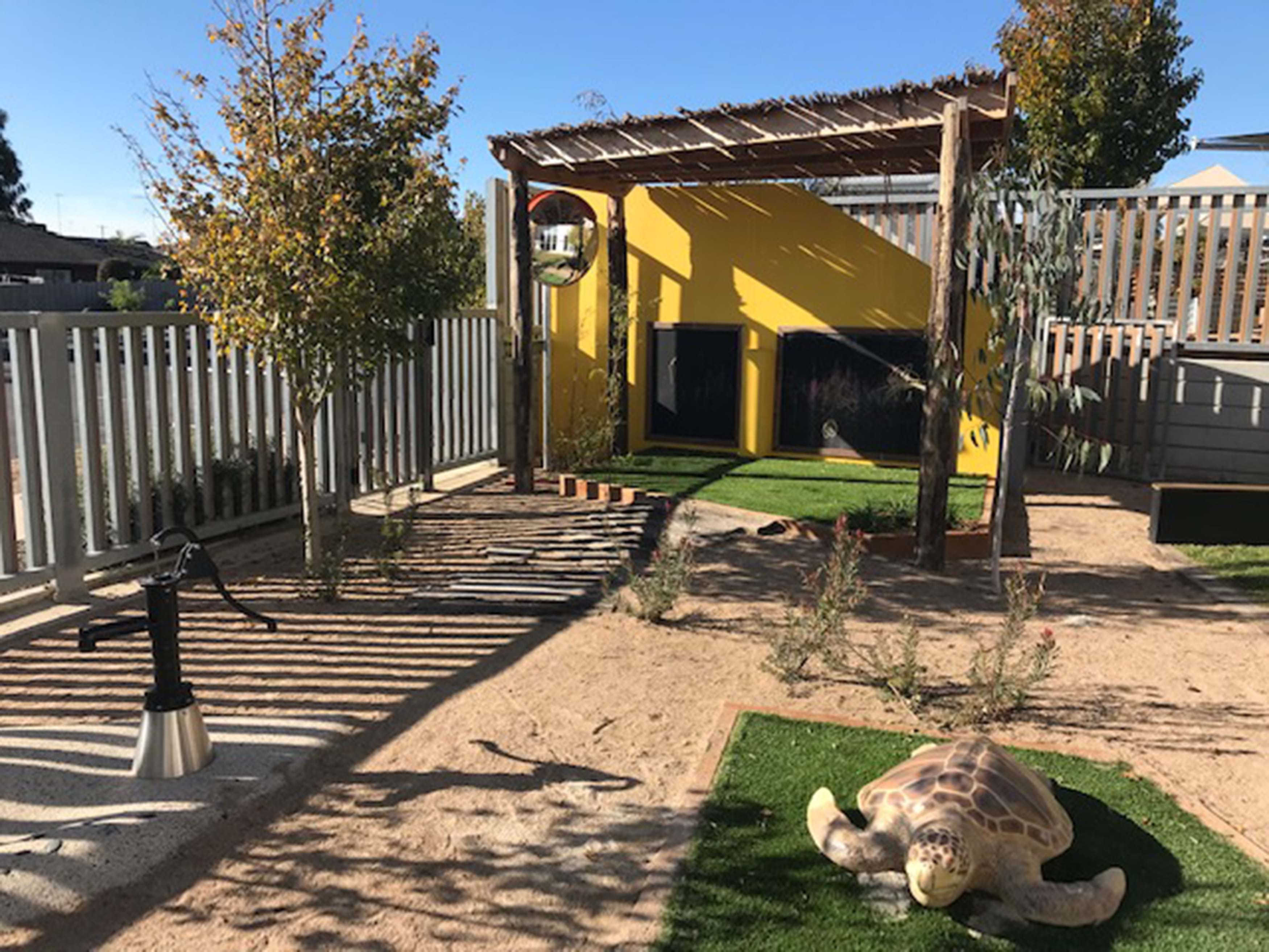Their brief was to re-imagine the centre with practicalities such as adequate built and natural shade options, reduce cold south westerly winds, overall durability, containment of sand and soil play.