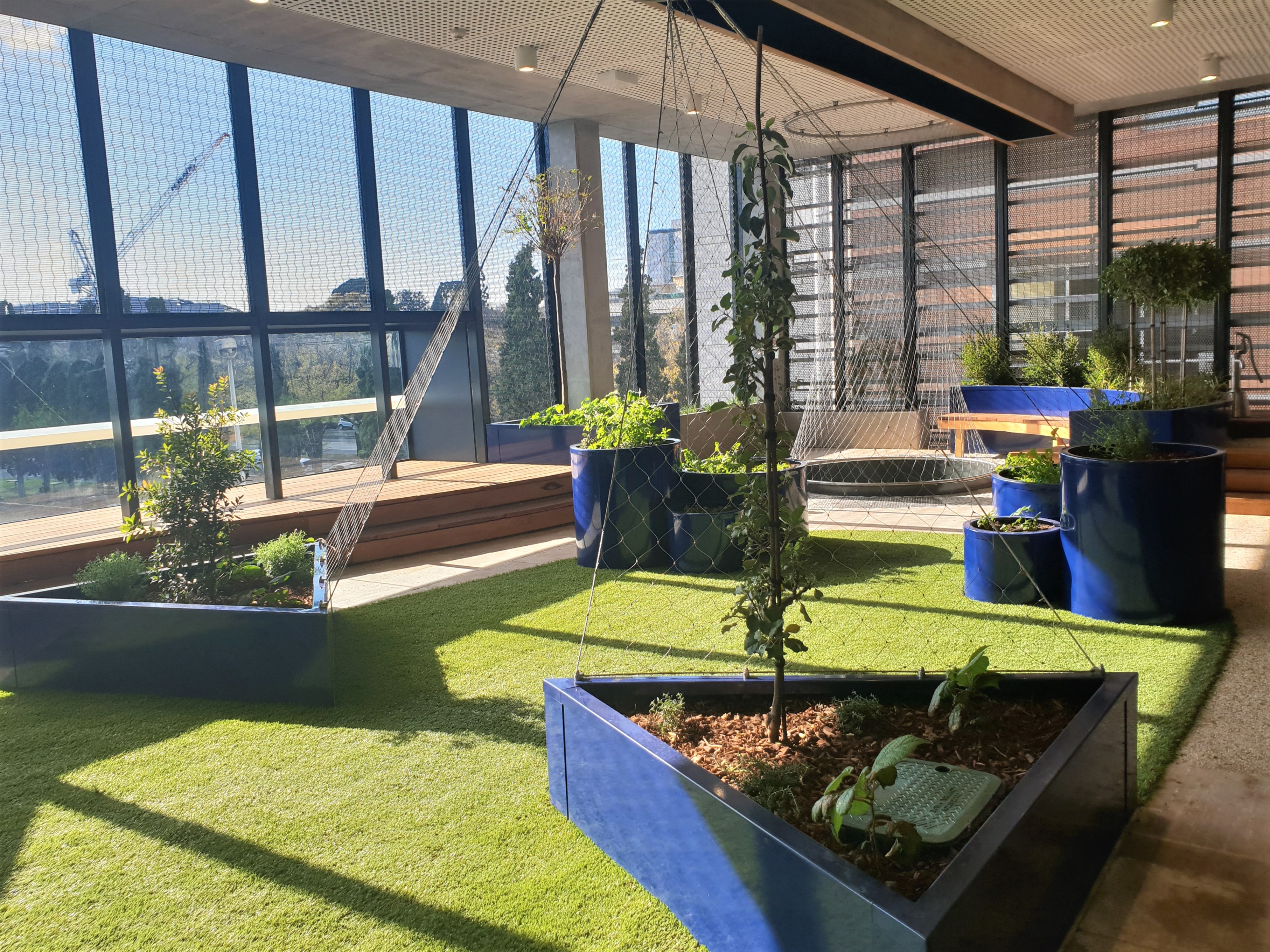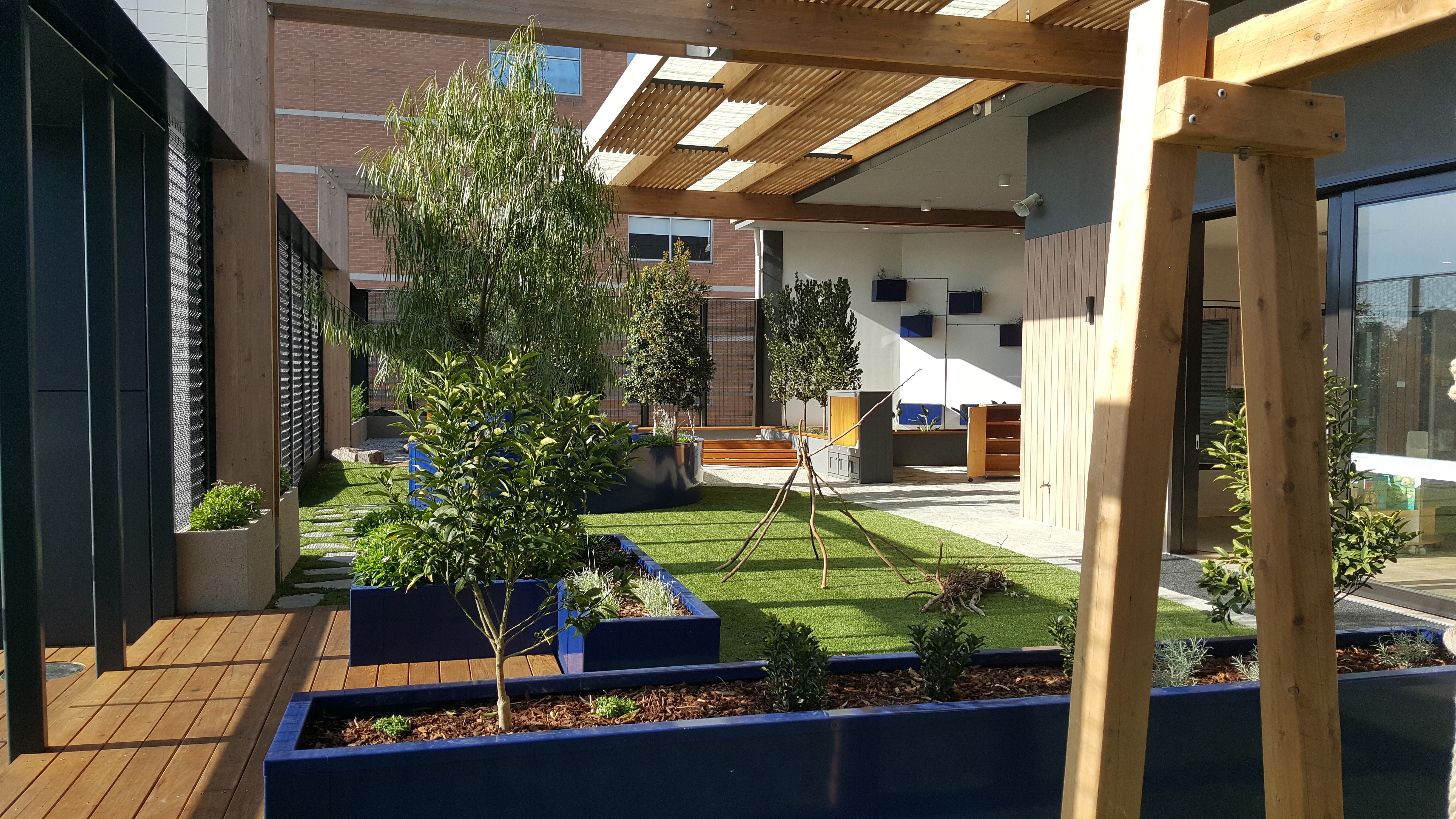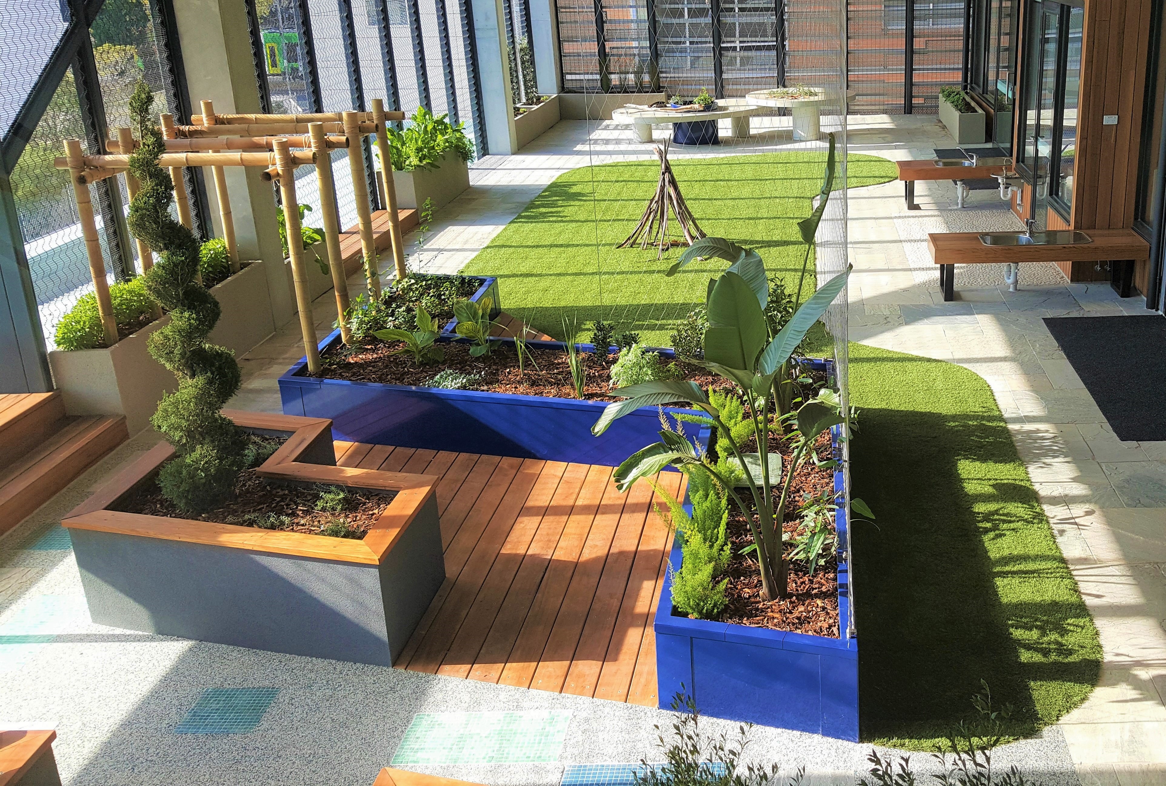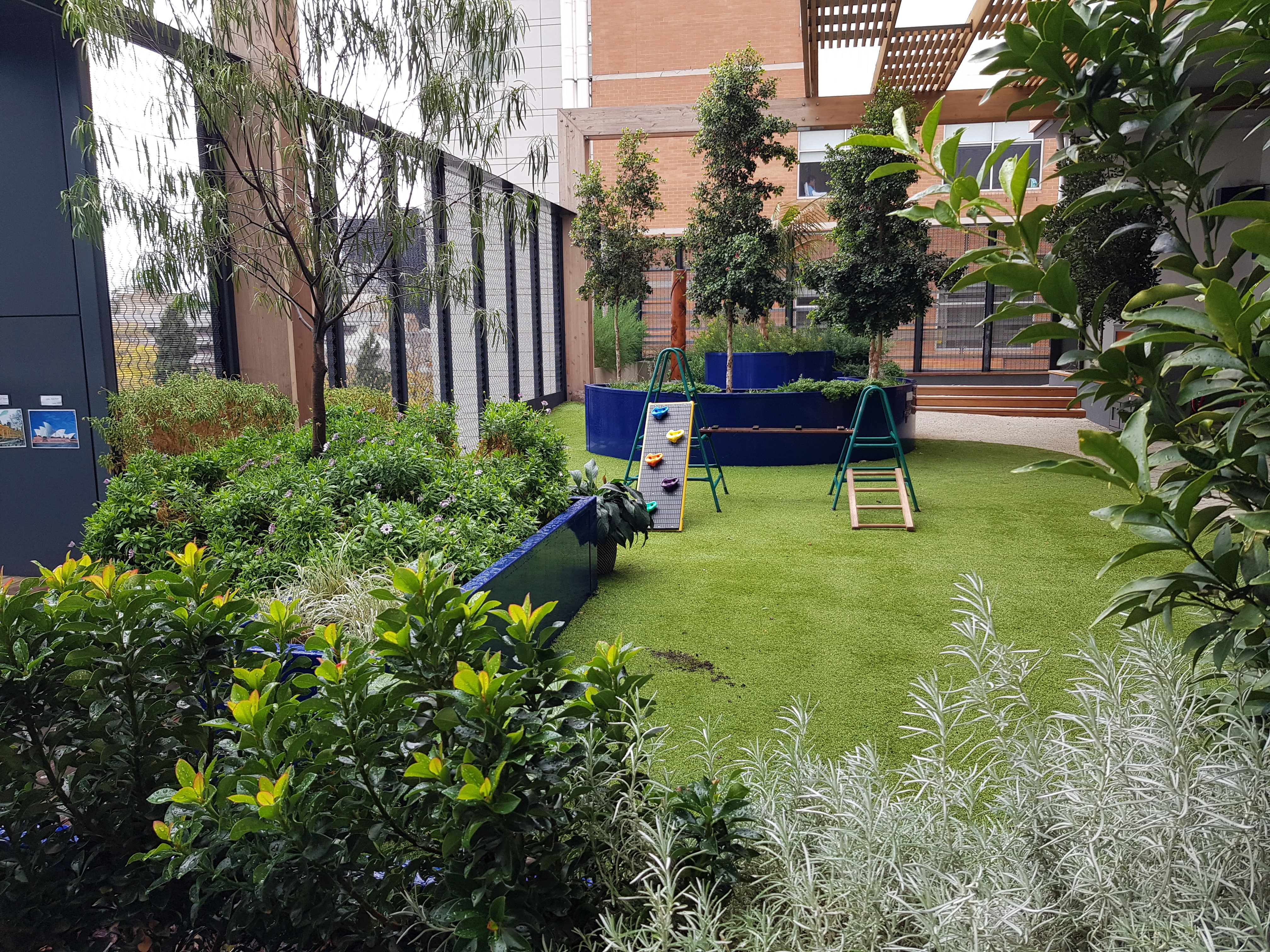 group and divided into indoor and outdoor space. This enabled the design of the outdoor play space and landscape of each floor to focus on the physical and educational requirements specific to the allocated age group. The provision of an environment promoting competence, supporting exploration, enabling every child to engage play-based learning and adapted to support every child’s participation was required.