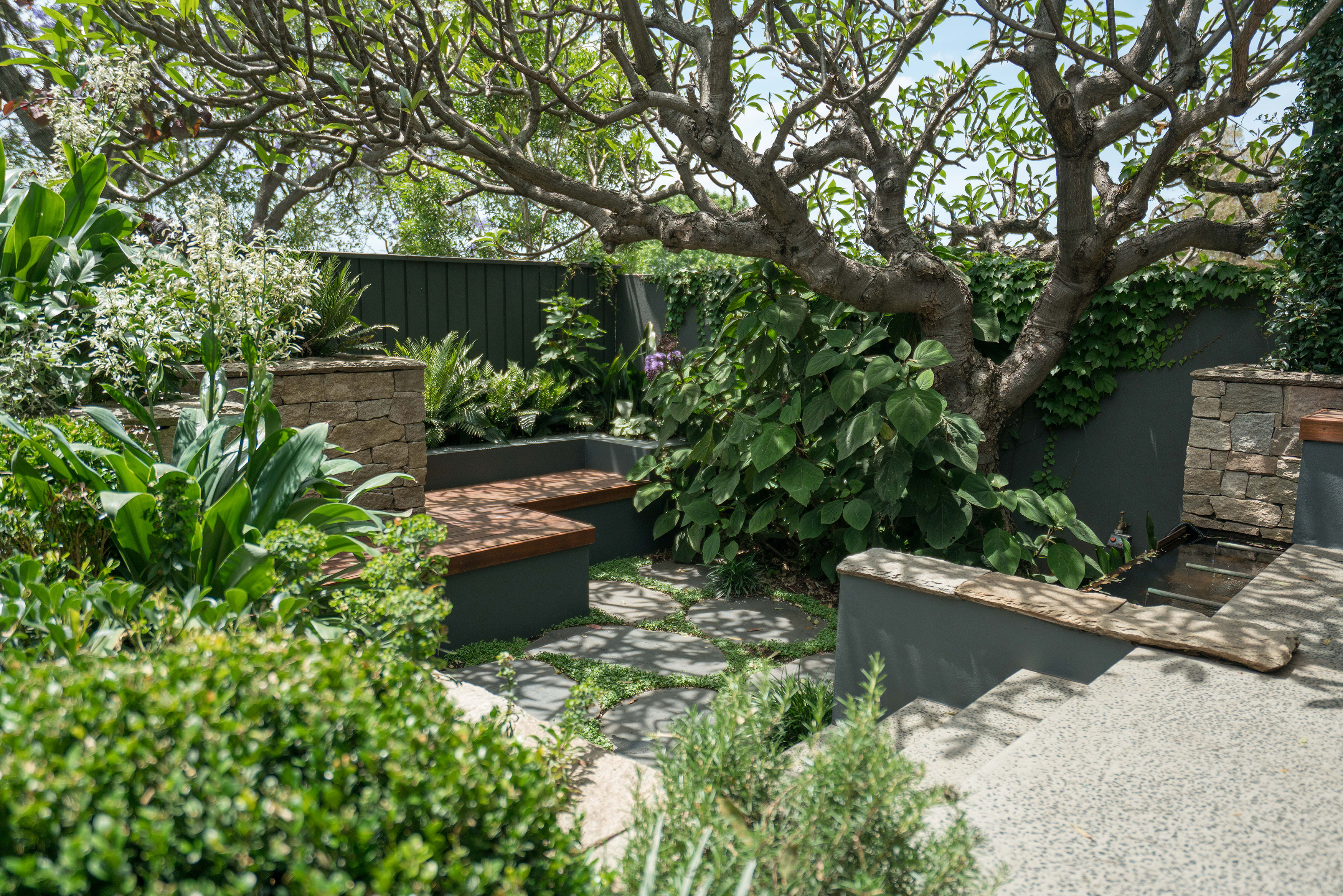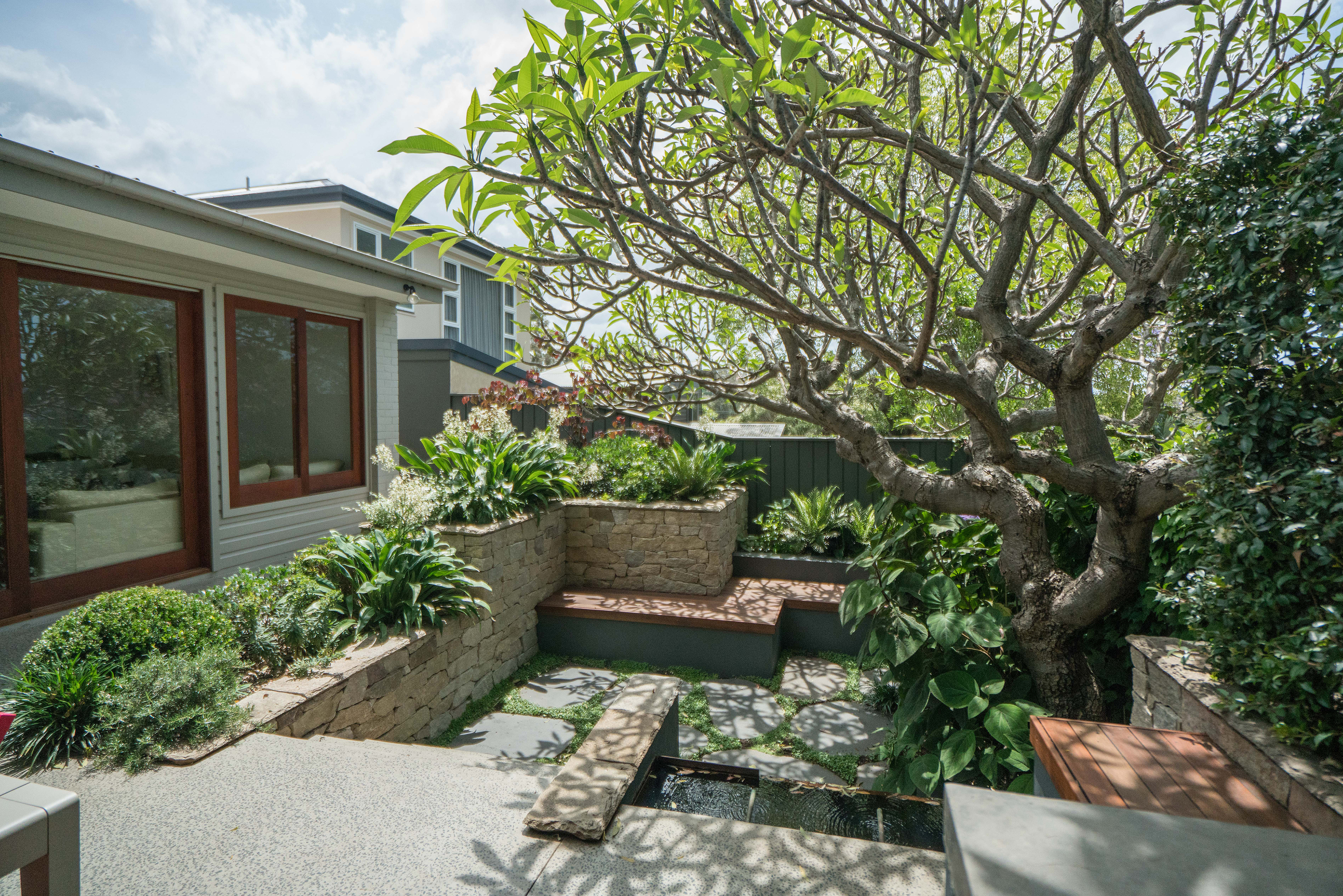 The established Franjipani tree was considerably lower than the Finish Floor Level of the house. An interesting layout of sunken lounge and tiered structures was created to integrate the site seamlessly and resolve the issue of split levels.