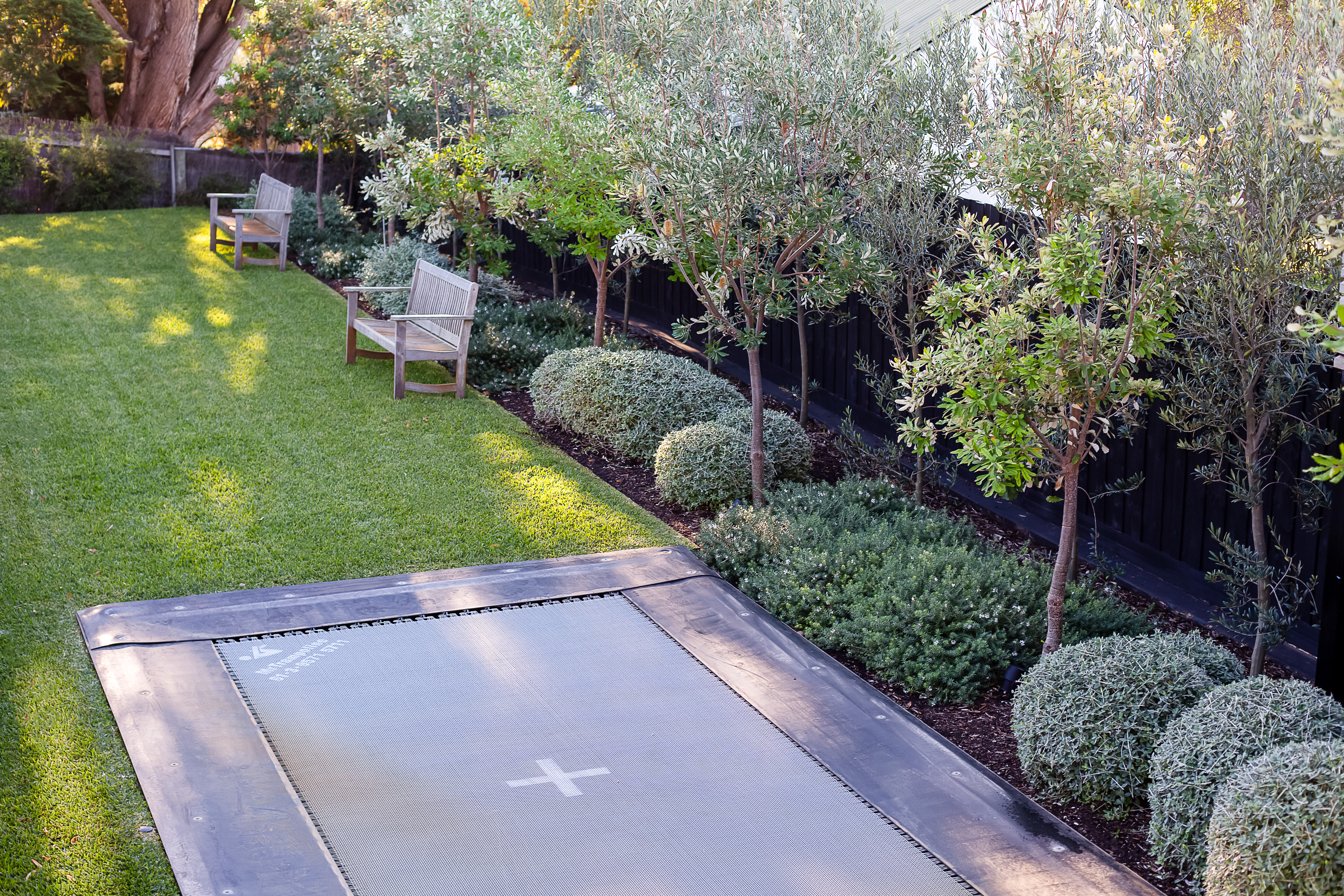 Beautiful, natural spaces were created in the front yard where the clients often like to sit in the afternoon. An entertainers delight at the rear is where a pool, fire pit, tennis court, lower lawn area and trampoline all work in perfect harmony together.