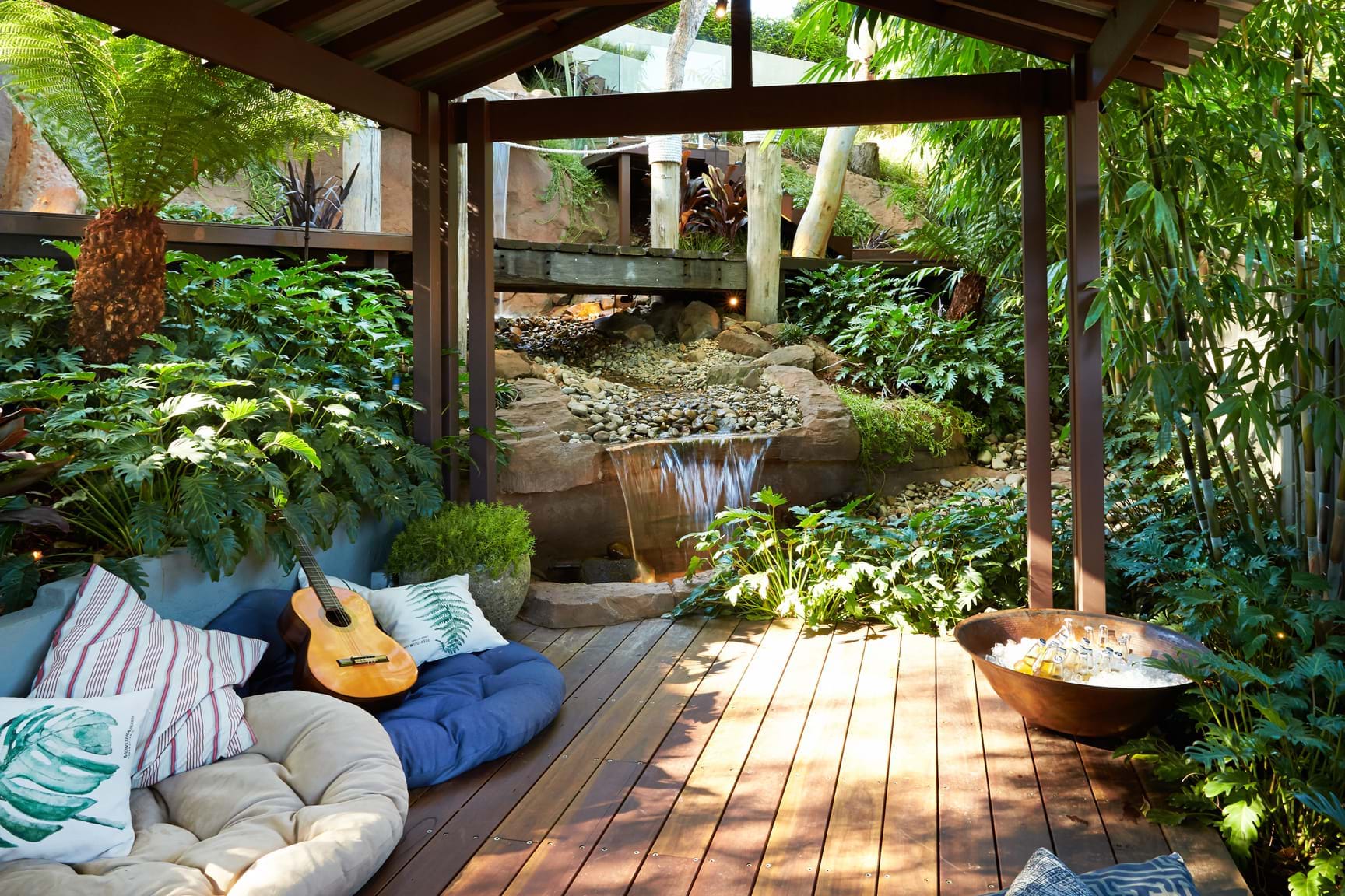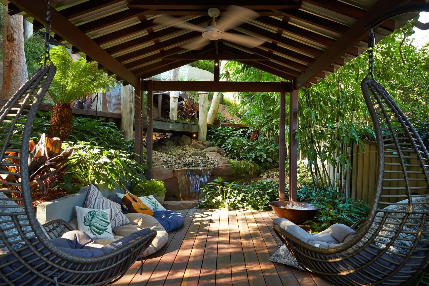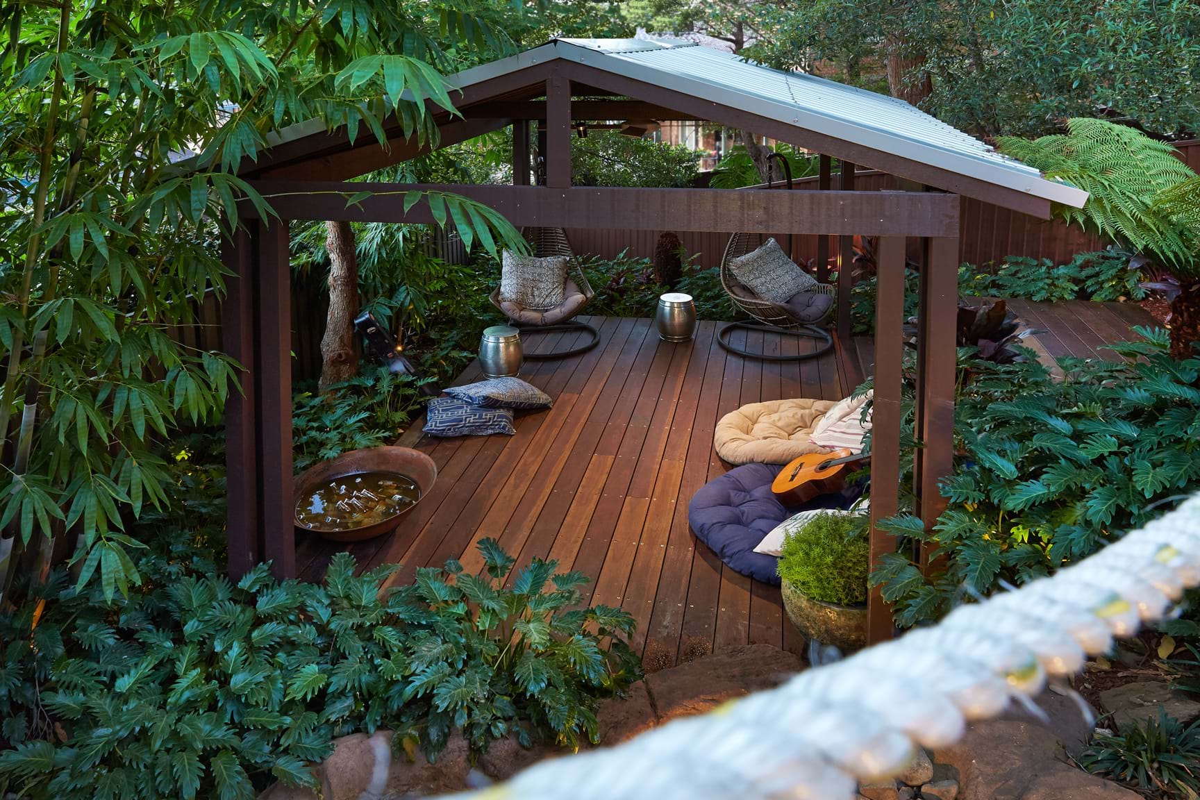 The wish of the client was a garden with many uses including a haven for relaxation after a