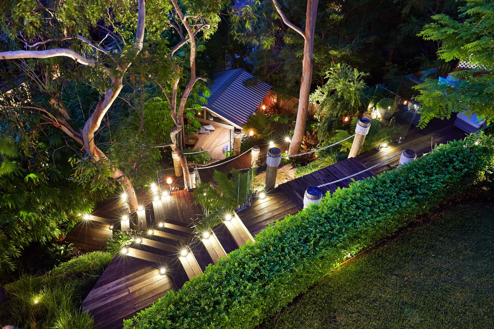 Creating a safe way of getting into this sloped parcel was important. A platform was installed