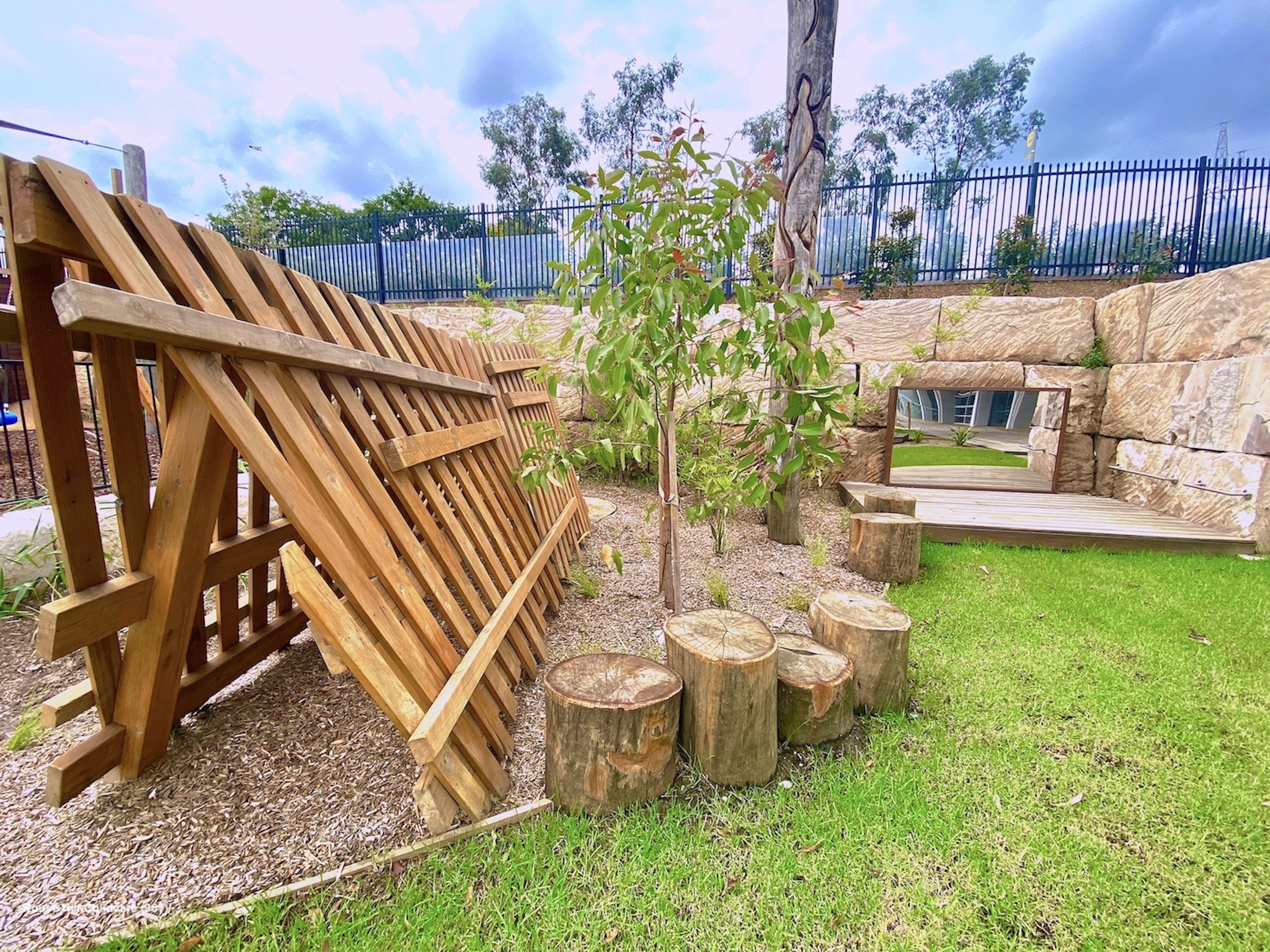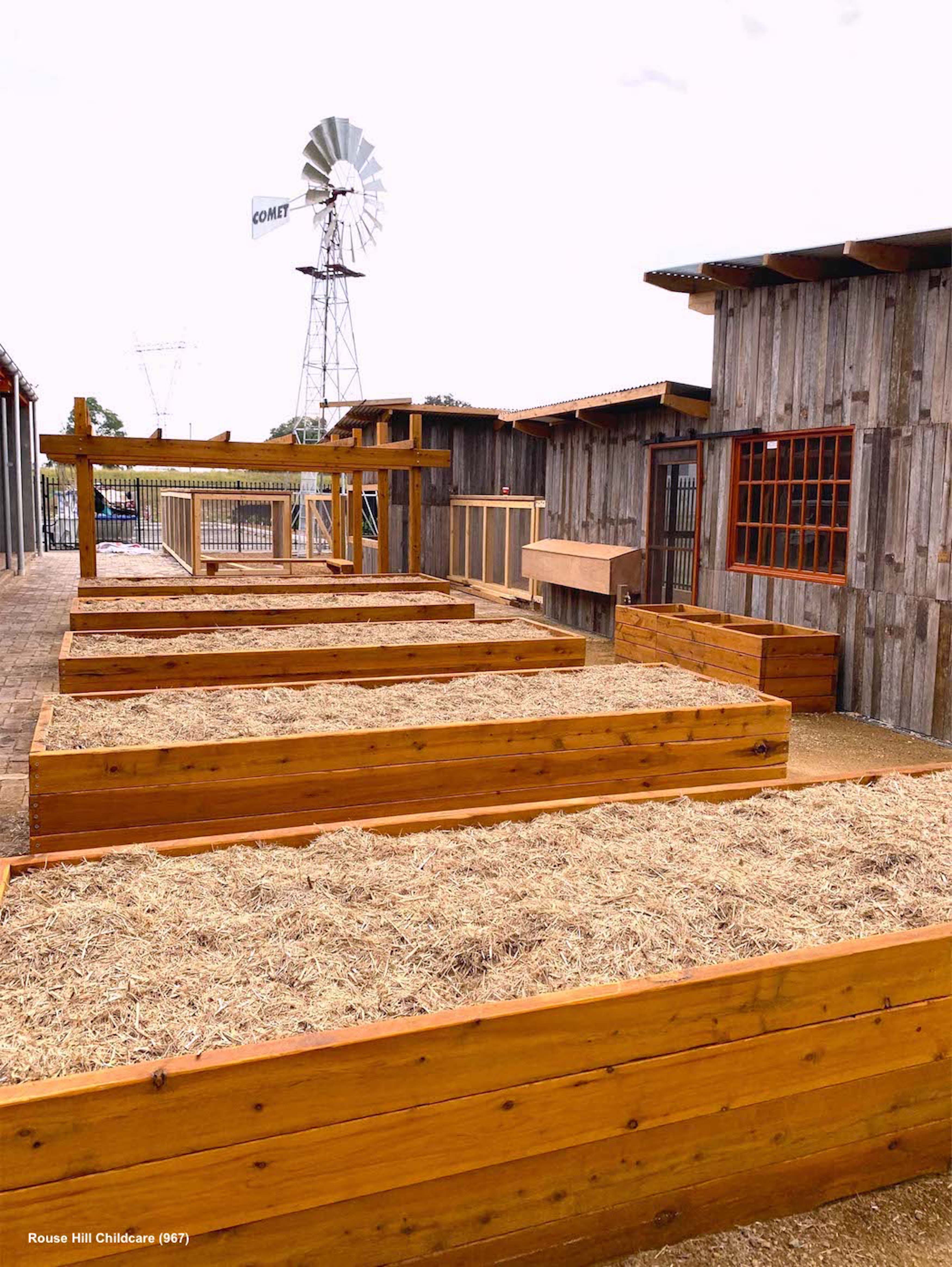 The play space was to be dynamic and open, providing areas for boisterous play including running, challenge and risk, a musical and sensory zone, a large jumping pillow and C.O.L.A, while also providing areas for quiet play and social interaction. There were to be areas for learning about nature, food production and sustainability and a kitchen garden big enough to provide more than a token amount of food for their onsite kitchen.