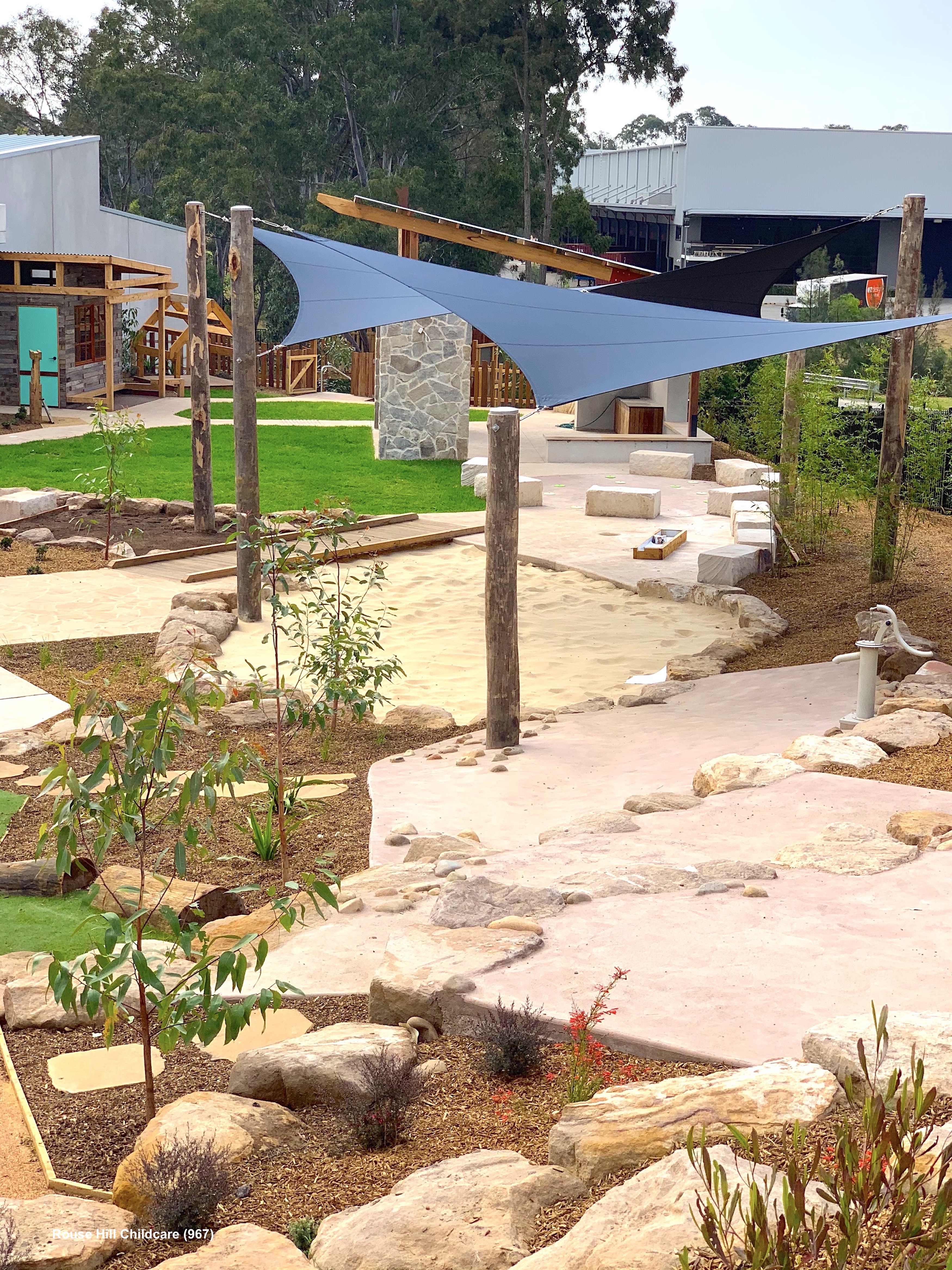 An extraordinary, thoughtful design encompassing all that preschool children could benefit from during playtime. Both a stimulating and calming environment all at once. This playground design is dynamic, open and extensive, while also providing areas for social interaction and quiet play. The designer has utilised the tree canopy and introduced terracing and stepped edging to provide challenges for children which are creative and inviting.