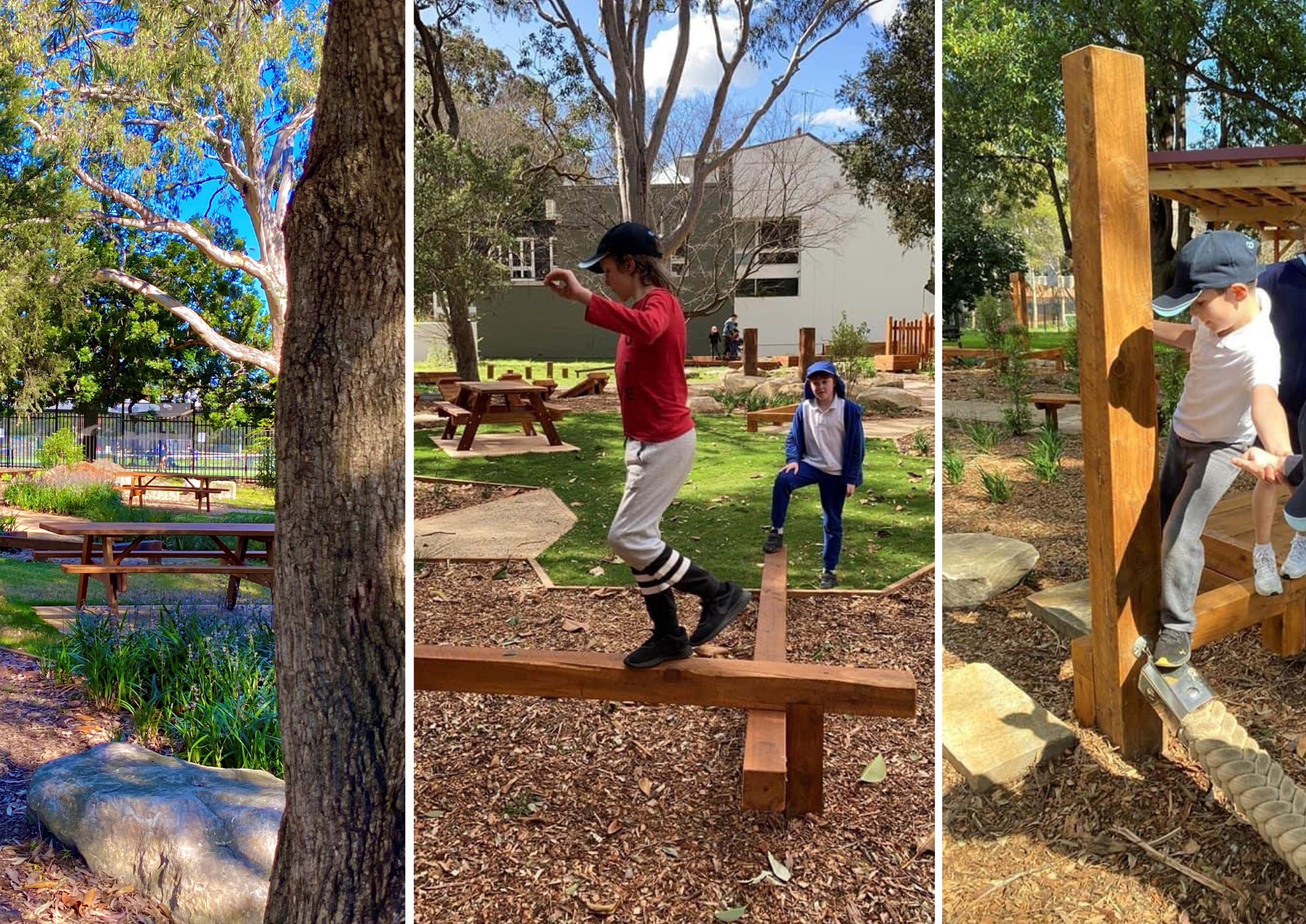 This is a design that delivers a diverse and cost-effective suite of outdoor spaces for learning and play. It includes plenty of engaging elements for students, staff and families, offering play and exploration areas, and places to connect, while addressing the clients request to look like understated parkland. The large, covered deck area and open lawn spaces have created engaging areas for classroom learning and outdoor play experiences.