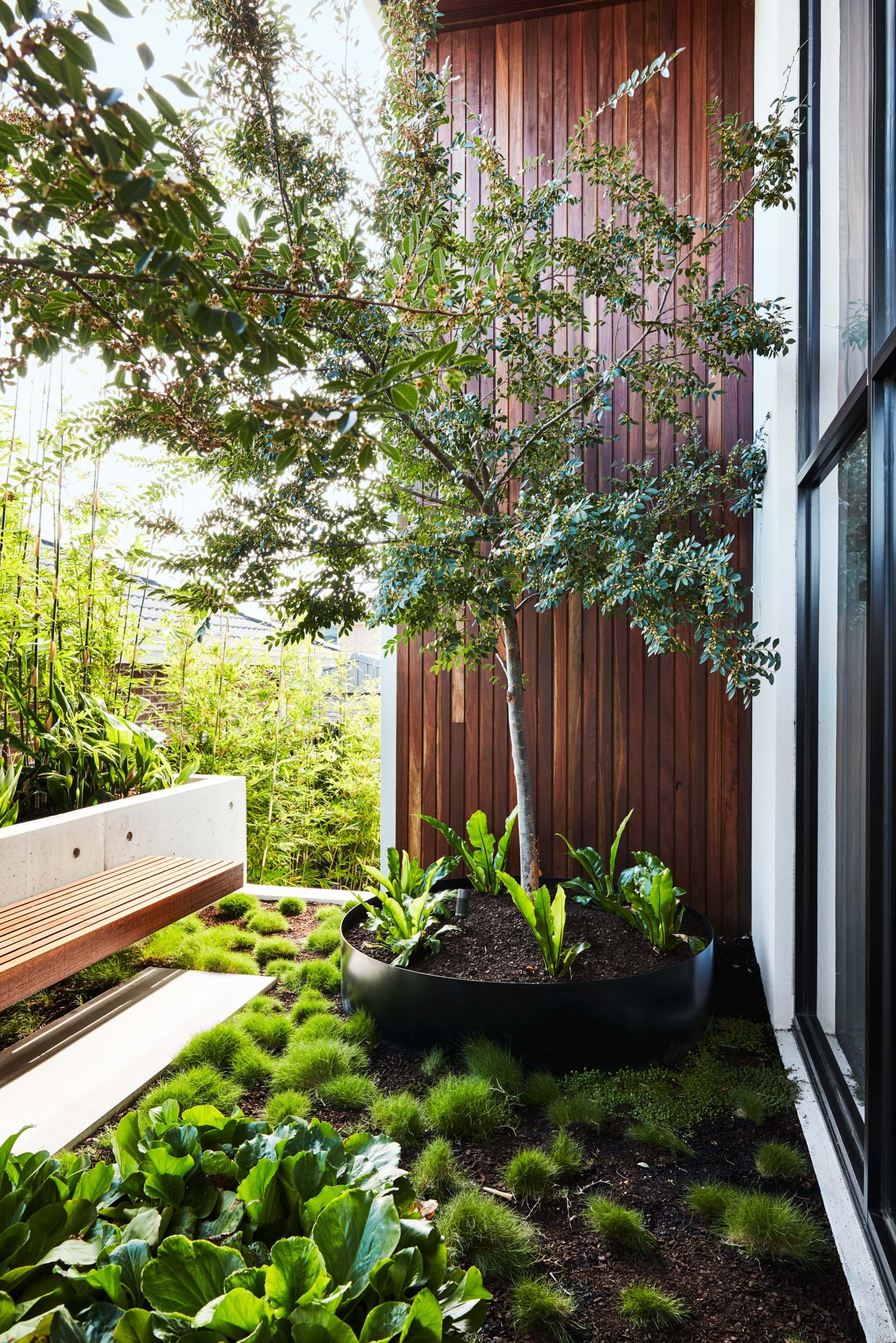 The clients wanted an architectural garden that not only complimented the large home but helped to bed it down and connect it to the site through an extension of the details. This project was as much about beautifying the landscape externally as it is about bringing a garden connection into the home. Techniques like greening the roof of the basement in the internal staircase through raised planters were used to achieve this.
