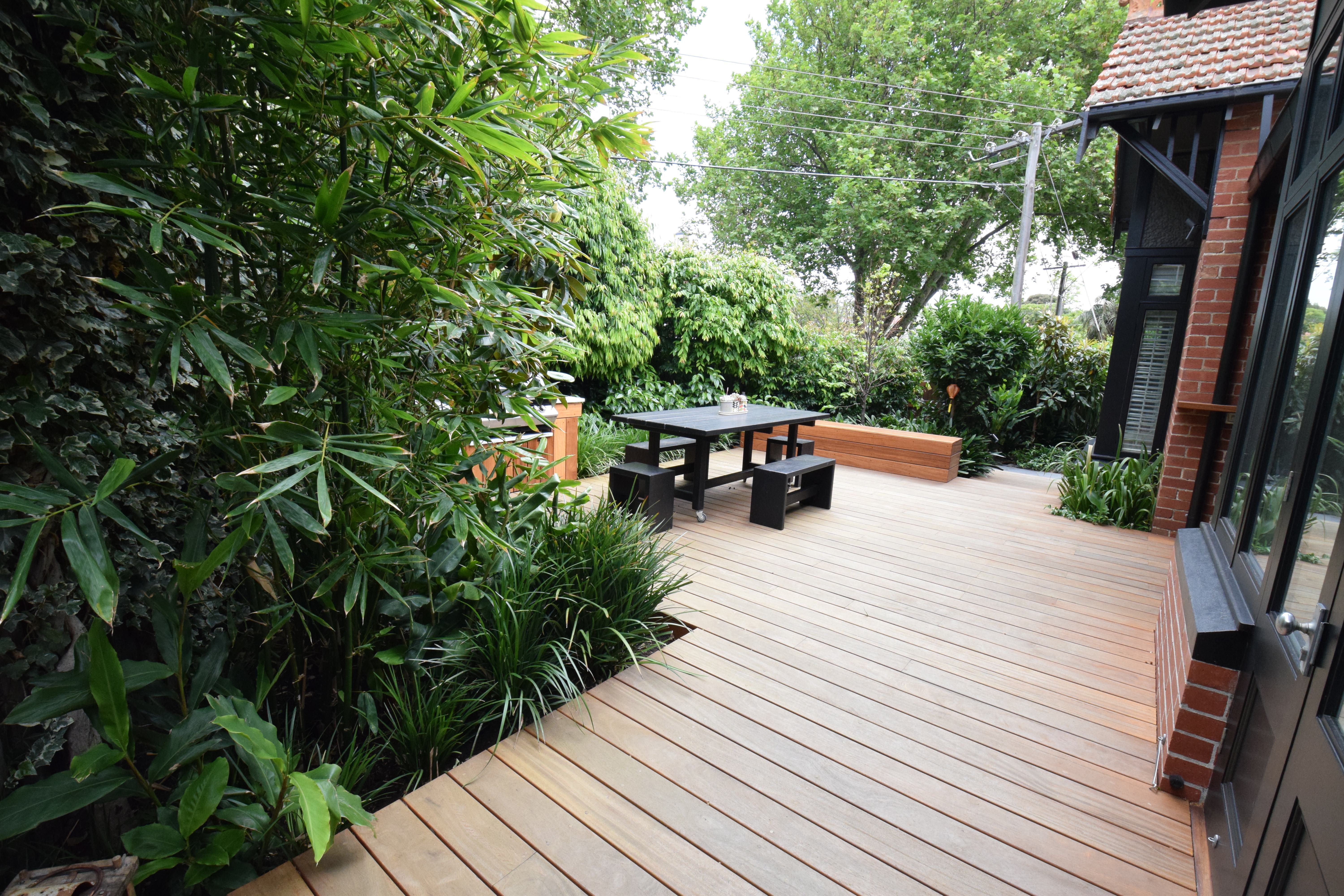 The site has been successfully transformed into an inviting landscape with plenty of garden nooks. The design utilises existing plants and a selection of new plants to achieve a lush, tropical feel for the new garden. There is a strong well balanced green theme where plants repeated on mass have maximum impact, perfume, texture, and colour.