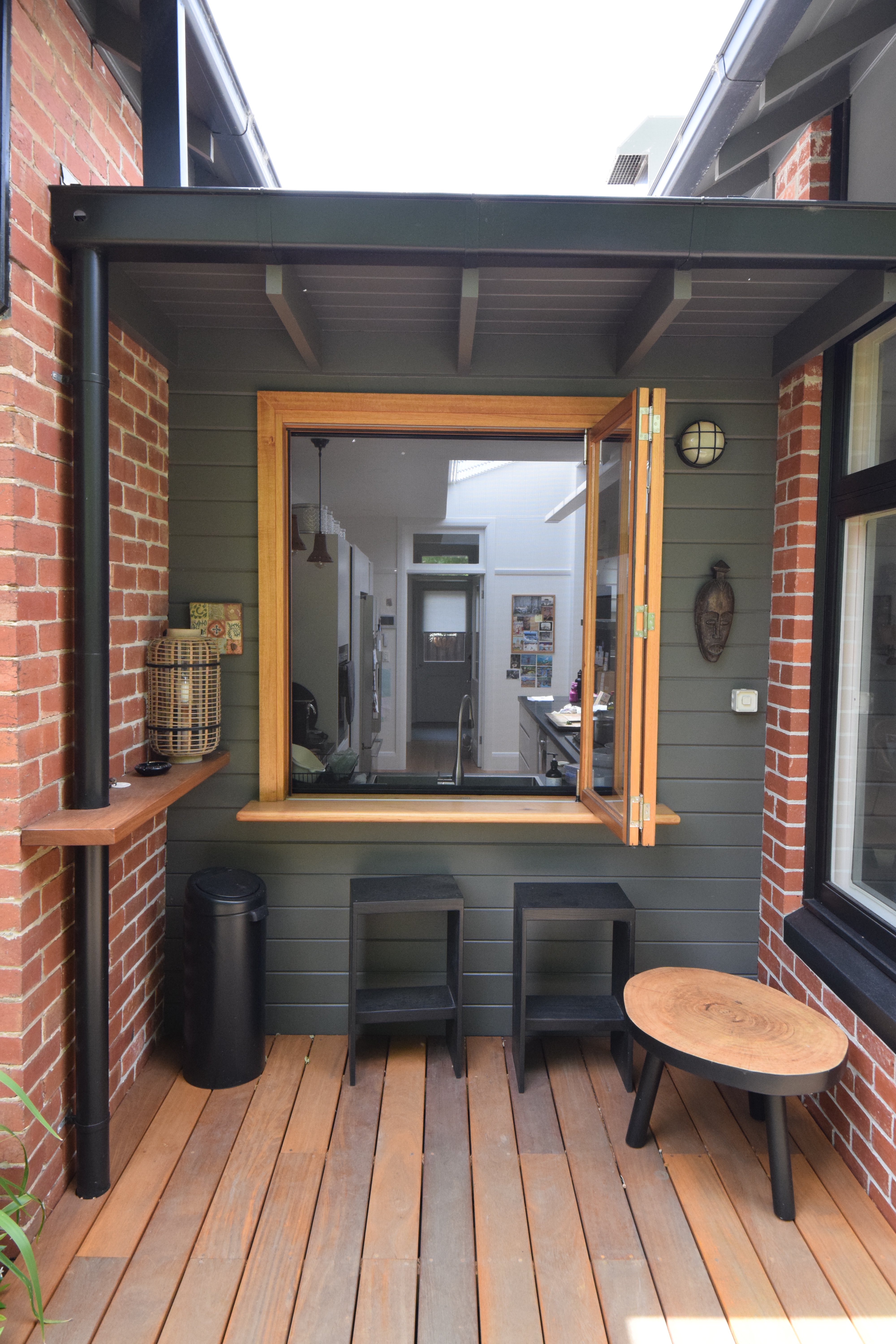 Architectural lines are drawn from the house to make a seamless connection, facilitating connection, flow, depth and space. A salvaged concrete laundry tub serves as a practical piece and sculptural outlook from the living space.