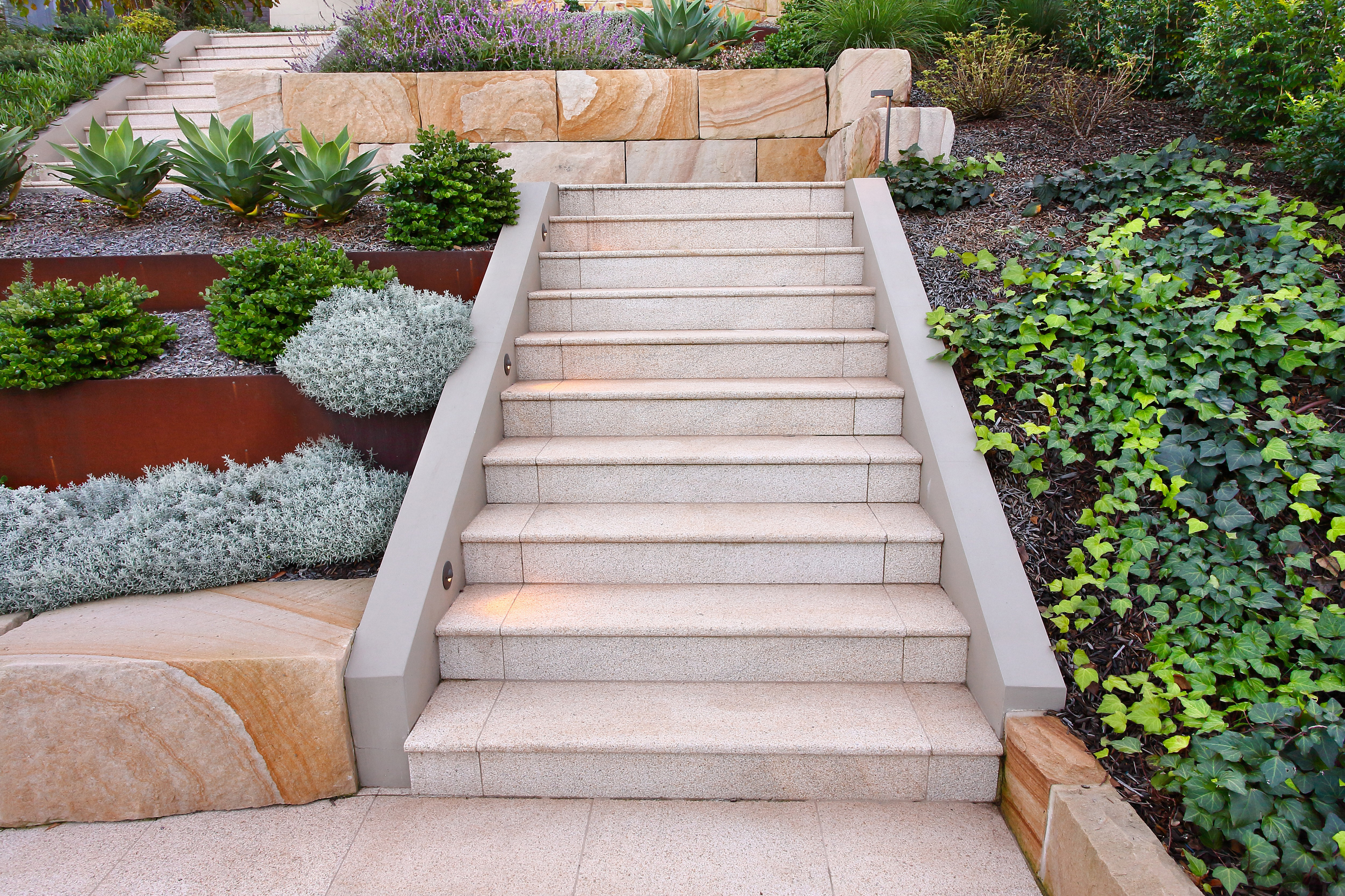 This was a challenging site, with a very steep slope and exposed position to enter the house. Harmonious yet interesting textures and tones in both the plant and hardscape palettes have created a landscape that meets the brief and gives the property a strong street appeal.
