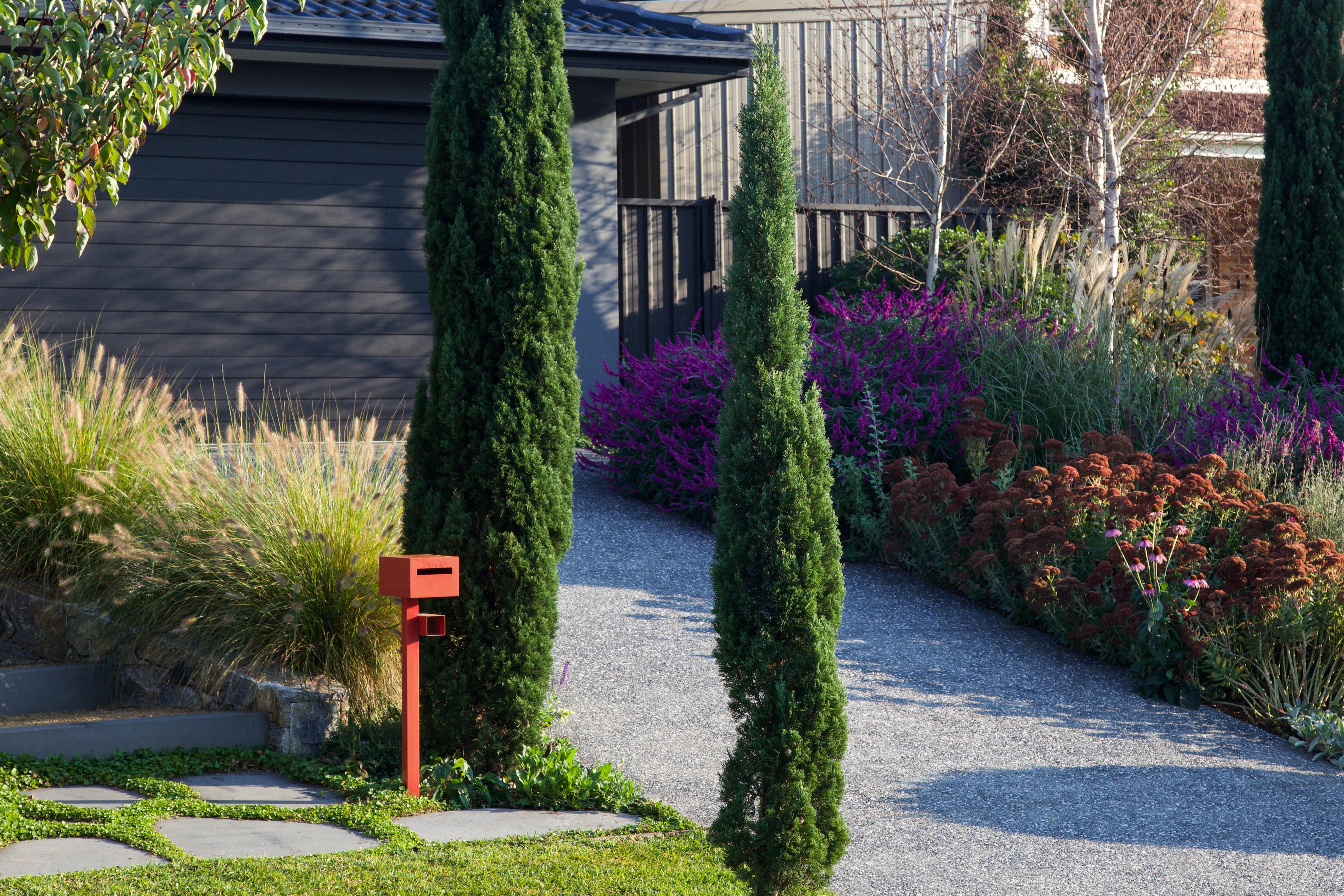 It was to maximise the street appeal of the property with a modern cottage style garden with soft, colourful layered plants. Pedestrian access to the property was to be improved and new front walls installed to complement the planting.